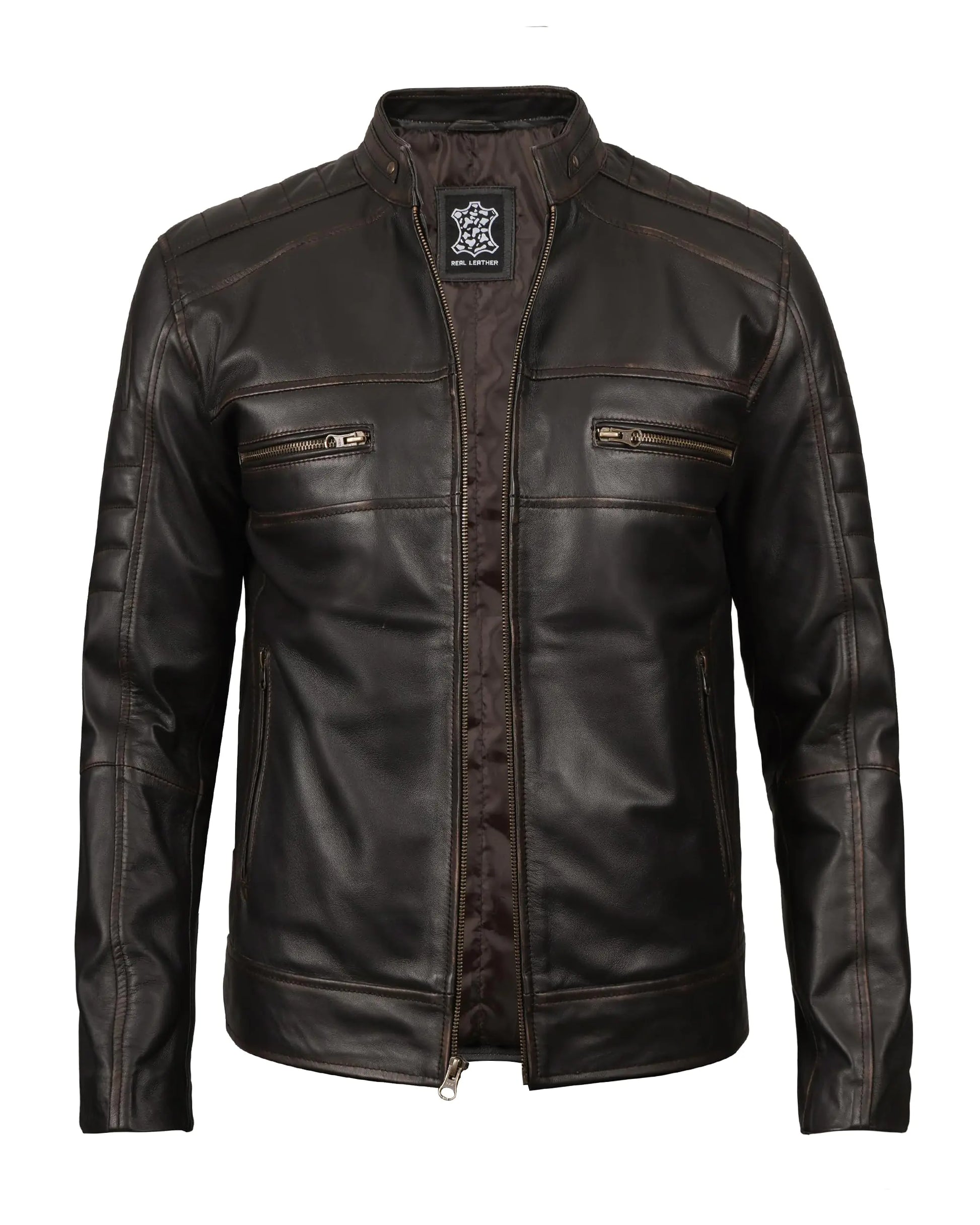 [► CRAFTSMANSHIP EXCELLENCE - This mens genuine leather jacket for men is a meticulously handpicked outerwear crafted with the finest materials by Royalapparel ensuring premium quality from top to bottom. ► YEAR-ROUND VERSATILITY - Embrace comfort and freedom of movement throughout the seasons with this natural grain mens vintage jacket. Its design not only enhances your style quotient but also provides all-weather wearability. "► SMART DESIGN FEATURES – Revel in the functionality of a well-constructed distressed leather jacket men zipper closure and purpose-built pockets tailored exclusively for mens leather jackets." ► BUILT TO ENDURE - Engineered by our experts this motorcycle leather jacket for men promises lasting durability making it a timeless addition to your wardrobe that will withstand the test of time and changing seasons.